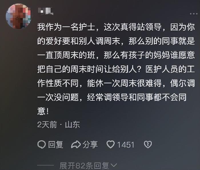 她一年到头,几乎每个月、甚至每个周末都要跟同事换班。